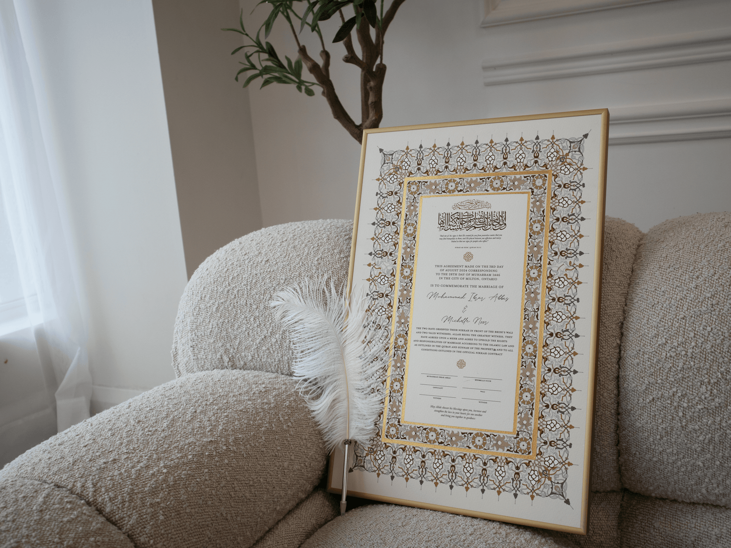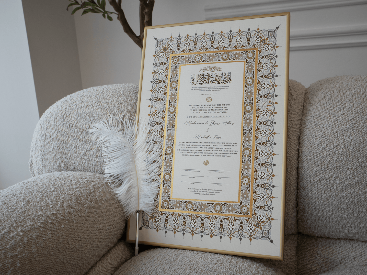 BUNDLE: SHUMAYAL Gold Nikah Contract Gold Painted + Frame + Feather Pen