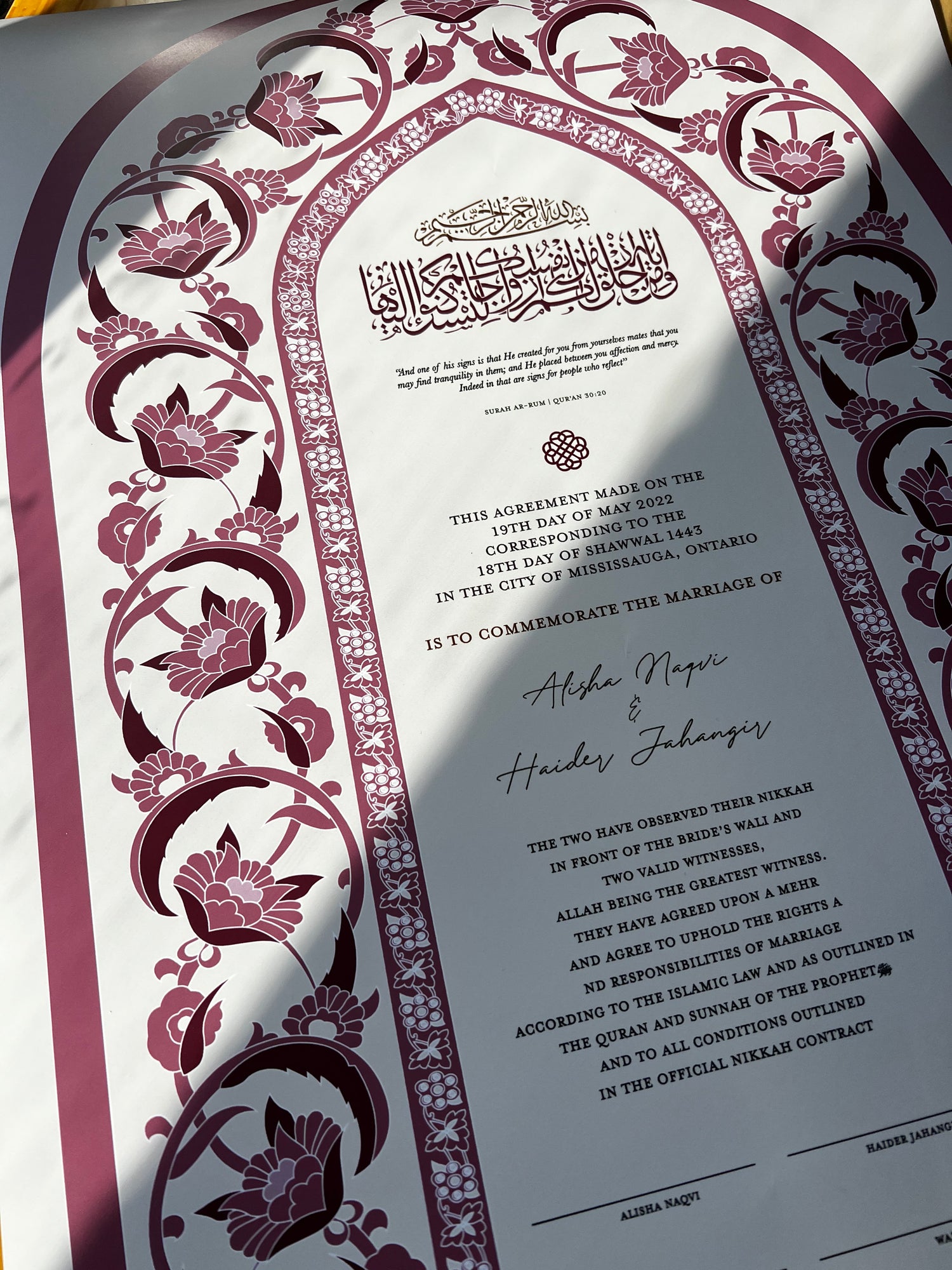 Introducing the Monazza- Blush Nikkahnama by Qismat Studio, a modern and beautifully designed keepsake that perfectly commemorates your union.
