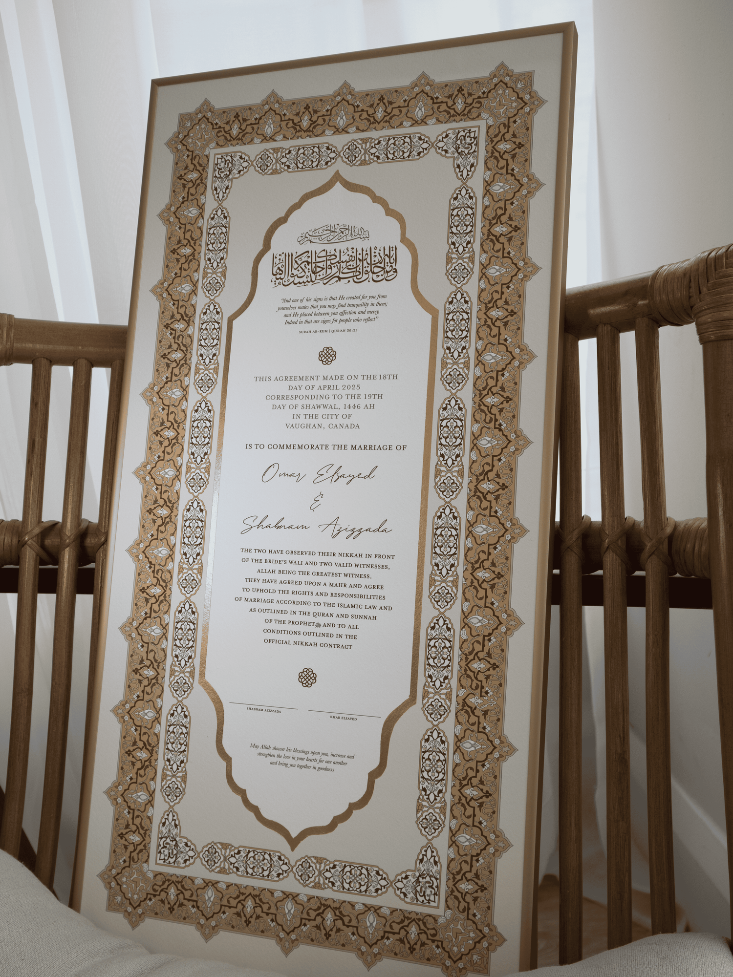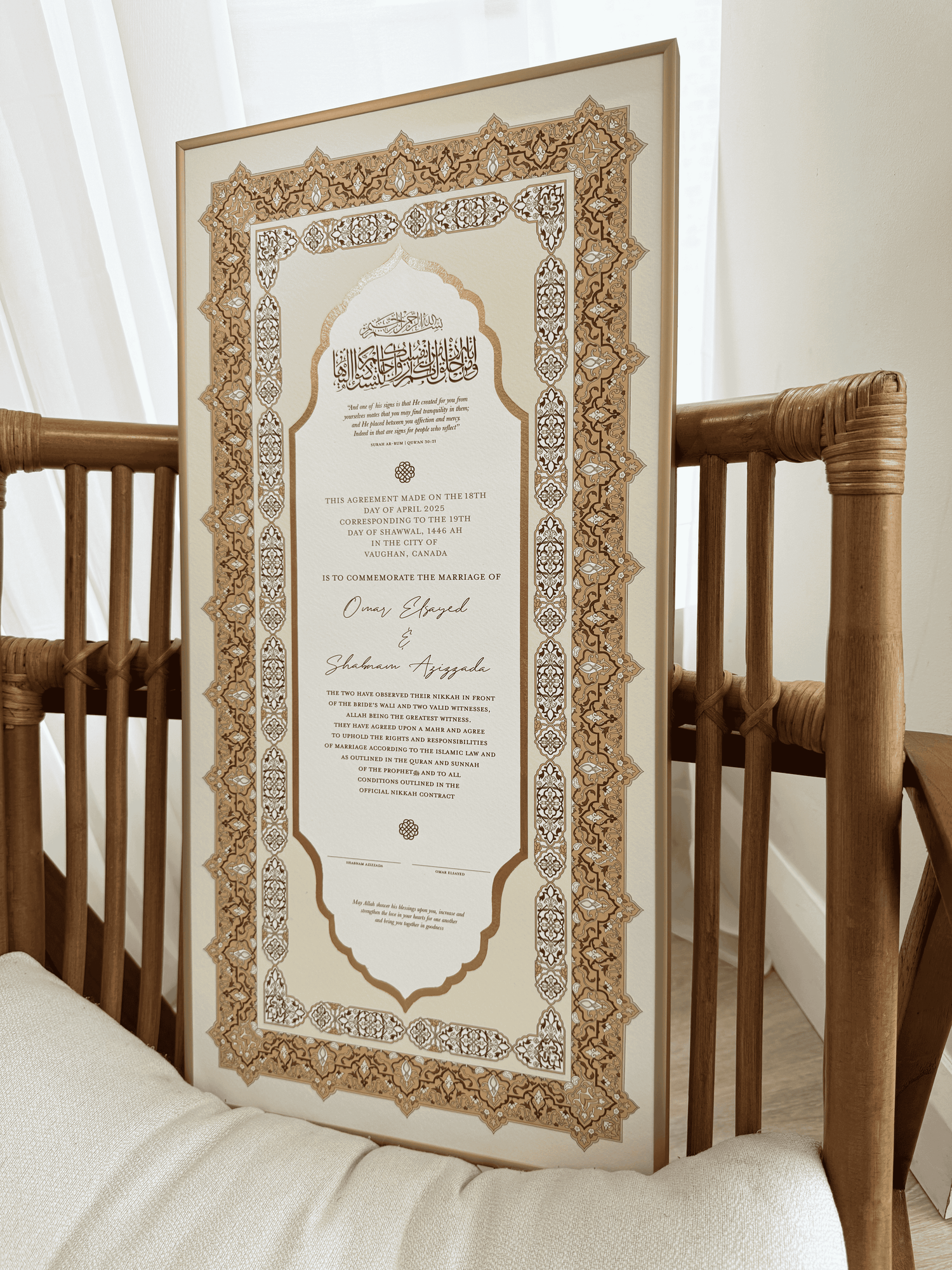 The Nayab - Gold Nikah Contract is a beautiful keepsake, designed to mark the special bond of marriage.