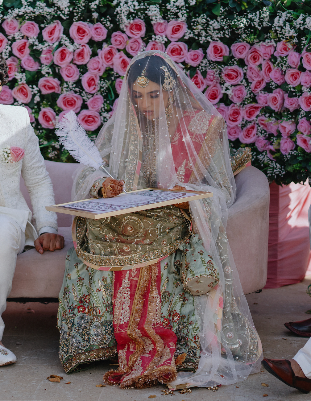 Introducing the MONAZZA - Sage Nikkahnama by Qismat Studio, a modern and beautifully designed keepsake that perfectly commemorates your union.