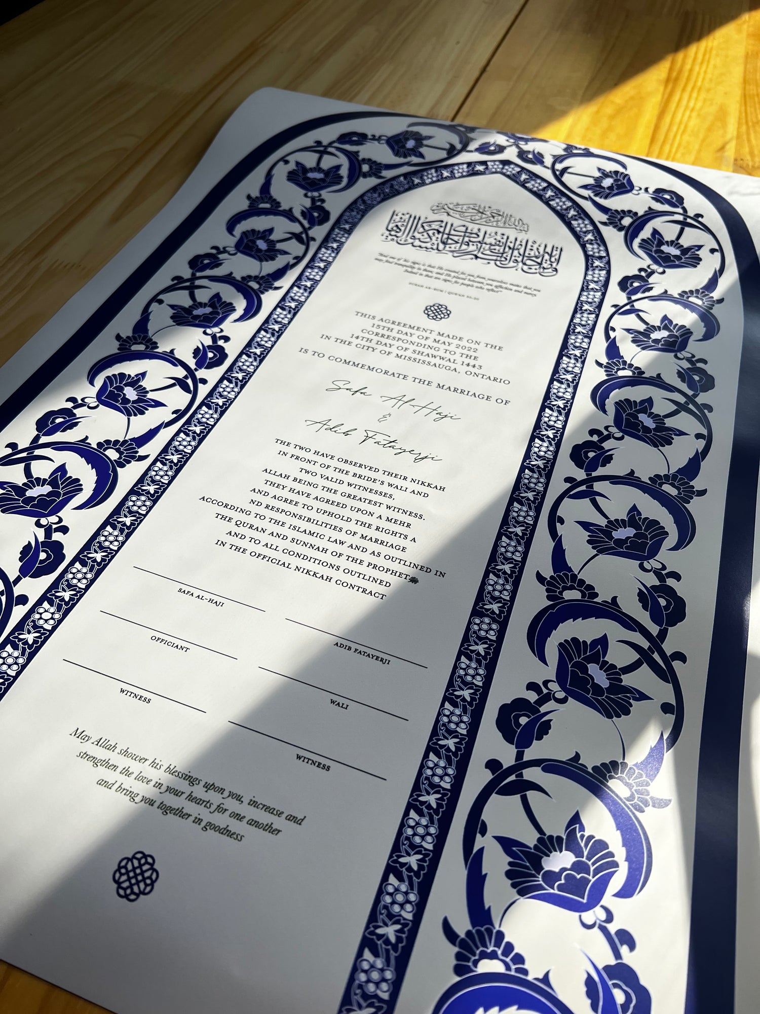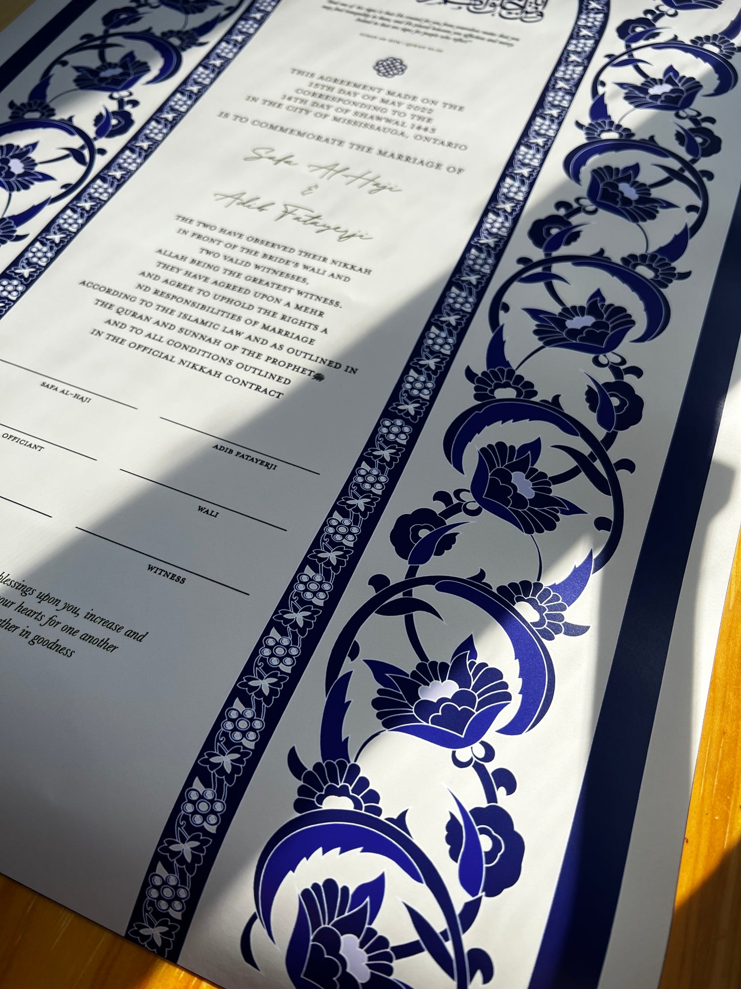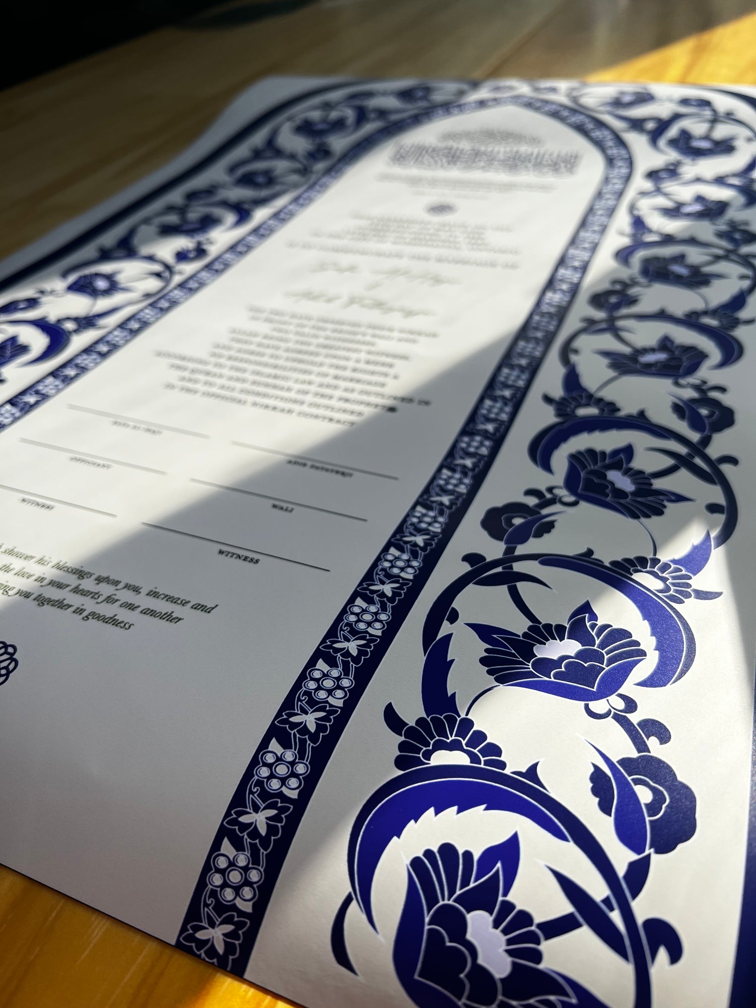 With its sleek and minimalist design, this certificate captures the essence of contemporary elegance. Meticulously crafted with attention to detail, this Nikkahnama is a visually stunning testament to the beauty of your special day.